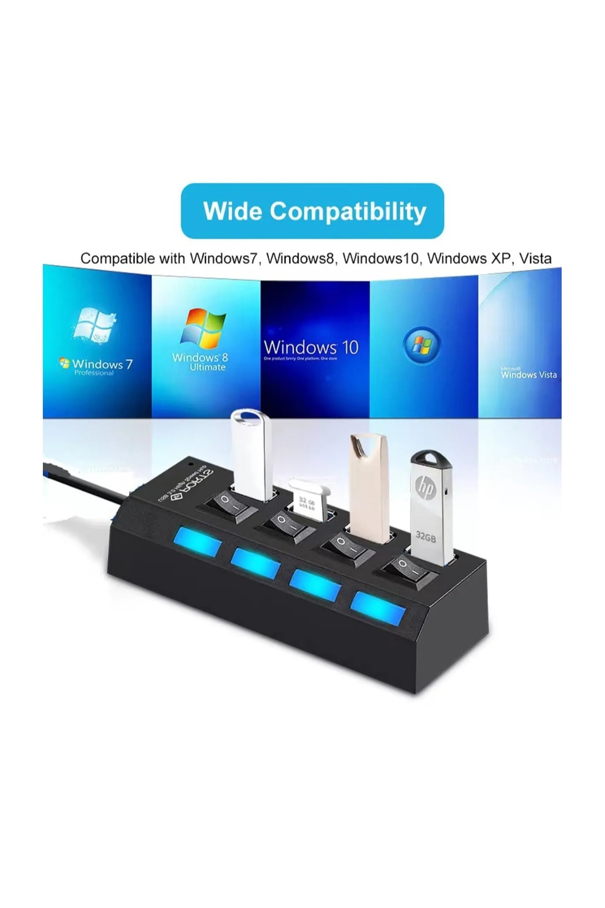 Anahtarlı Işıklı 4 Portlu Usb Çoklayıcı Usb Çoğaltıcı 2.0 Uyumlu
