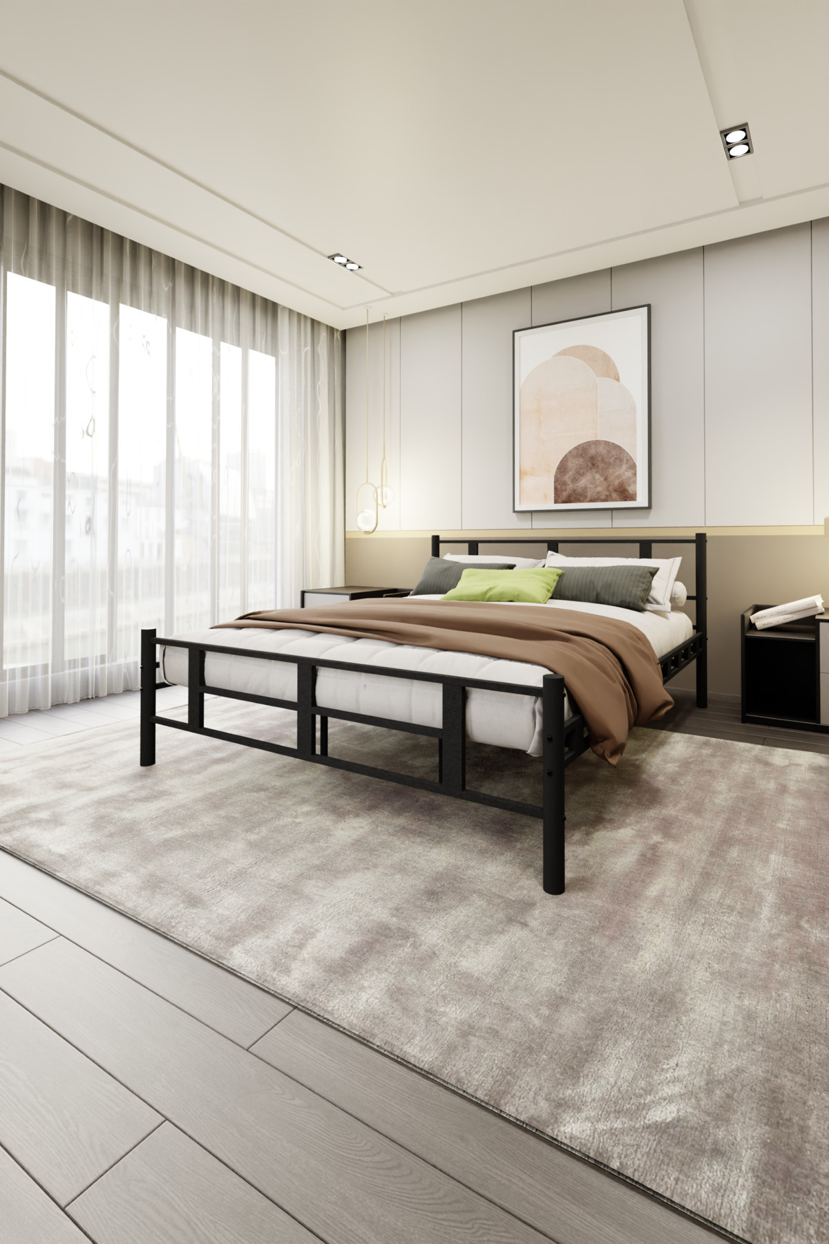 Karma Çift Kişilik Siyah Metal Karyola